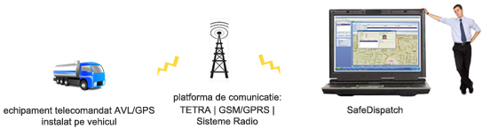 Unitatile hardware sunt disponibile pentru transmisie peste o varietate de retele wireless (celulare si radio). Pozitia vehiculului si raportarea evenimentelor pot fi transmise periodic (ex. la fiecare 10 secunde) si/sau in urma unui anumit eveniment, sau oricand s-a scurs o anumita perioada de timp de la ultimul mesaj.